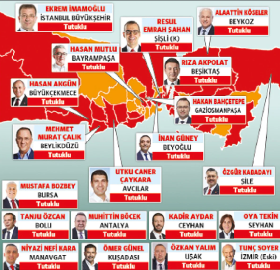 İktidar seçimle alamadığı belediyeleri operasyonlar ve tutuklamalar yoluyla aldı. Şu anda CHP'nin 18 belediye başkanı tutuklu. Son yerel seçimlerde Türkiye genelinde CHP'ye oy vermiş 8 milyon 268 bin 249 kişinin iradesi de yok sayılmış oldu.