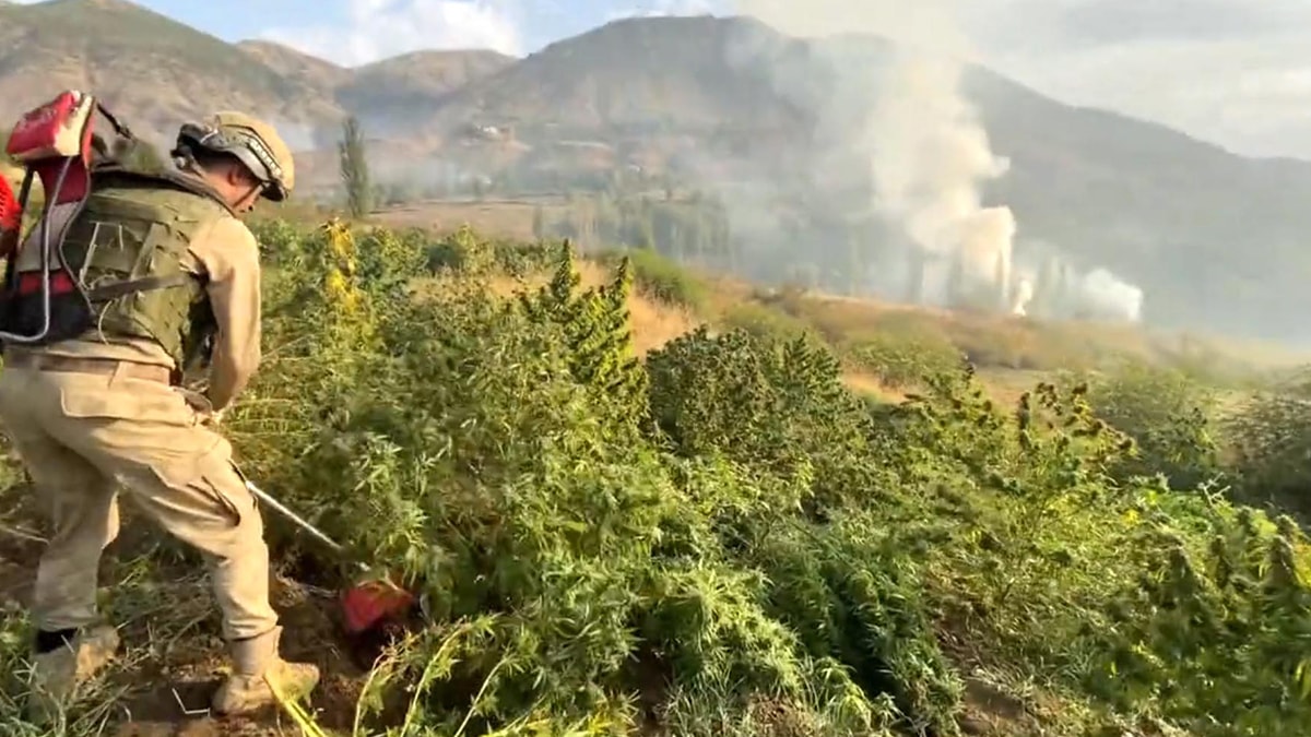 Diyarbakır İl Jandarma ve Gaziantep İl Jandarma komutanlıklarımızca Bölücü Terör Örgütü’nün finans kaynaklarını engellemek amacıyla Lice kırsalında ve Gaziantep’te Narkogüç operasyonları düzenlendi. 2 ton 650 kilogram esrar, 3 milyon 450 bin kök kenevir, 1 milyon 200 bin kök skunk ve 121 kilogram skunk ele geçirildi. Operasyonda 8 şüpheli şahıs yakalandı."
