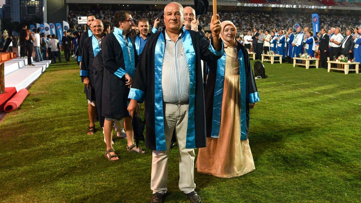 Akdeniz Üniversitesi'nin 2023-2024 eğitim öğretim yılı mezuniyet töreni, üniversite stadyumunda yapıldı. Törende mezun öğrenciler, taşıdıkları pankartlarla mesajlarını iletti. 8 bin 864 öğrencinin mezuniyet heyecanı yaşadığı törende bazı öğrenciler Filistin bayrağı, 'Türkiye Türklerindir', 'Ne Mutlu Türküm Diyene', 'Türkiyeli değil Türk' yazılı dövizler taşıdı. Törene katılanlar, alkışla mezunları tebrik etti.