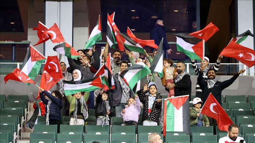 Karşılaşma öncesinde duygusal anlar yaşandı. Filistinli çocuklar, milli futbolcularla birlikte sahaya çıktı, seremoniye katıldı. Seremoninin ardından Filistinli çocuklar tribüne, ailelerinin yanına çıktı. Tribünlerde Türk ve Filistin bayrakları açıldı. TFF de maçın tüm hasılatın Gazze’ye bağışlanacağını açıklamıştı.
