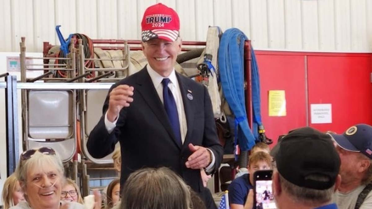 Basına kapalı etkinlikte, Biden'ın eski ABD Başkanı ve başkanlık seçiminde Cumhuriyetçilerin adayı Donald Trump'ı destekleyen bir kişiyle konuştuğu ve daha sonra bu kişinin "Trump 2024" yazılı şapkasını alıp taktığı anlar kameralara yansıdı.