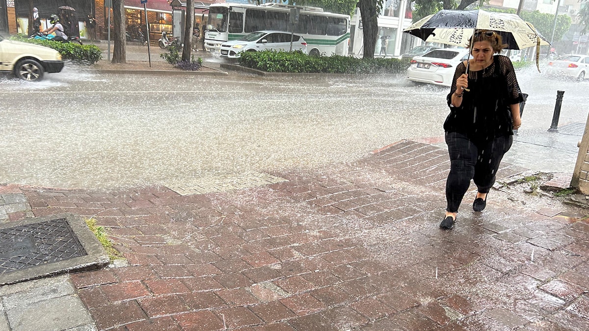 Bazı vatandaşlar şemsiyeleriyle yağıştan korunurken bazıları da saçakların altında yağmurun durmasını bekledi.