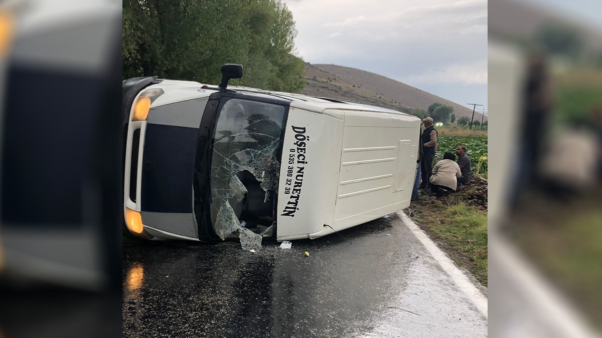 N.Ö (47) idaresindeki 03 SK 383 plakalı tarım işçilerini taşıyan minibüs, Aydın köyü yakınlarında devrildi.