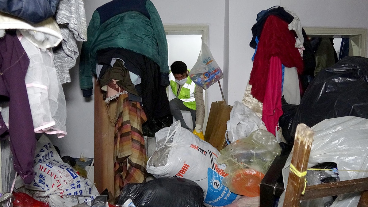 Çocuklarından ayrı yaşayan Şeraffettin T.'nin hastanede tedavi gördüğü sırada yasal sürenin dolması üzerine çöp eve dönen dairede ekipler temizlik yaptı. Evden yaklaşık 20 ton olduğu belirtilen 2 kamyon çöp çıktı. Çöplerin çıkarılmasının ardından ev, dezenfekte edildi.