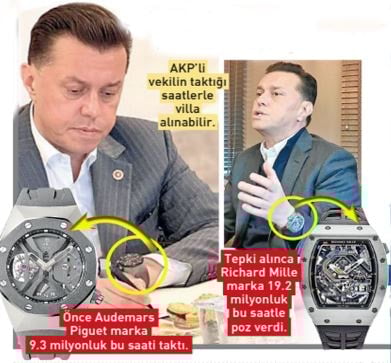 İYİ Parti’den AKP’ye geçen Nebi Hatipoğlu, 3 yıllık vekilliği boyunca sadece “ultra lüks” saatleriyle gündeme geldi. TBMM’deki bütçe görüşmelerine 9.3 milyon liralık saatle katılan Hatipoğlu daha sonra ise 19.2 milyon liralık lüks bir başka saat taktı.