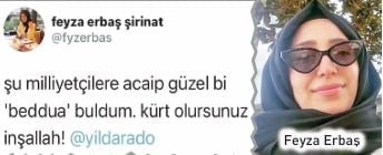 Geçmişte “Aynı dili konuşuyoruz” etiketiyle Türkçe olimpiyatlarını desteklediğini paylaşan Feyza Erbaş bir başka paylaşımda “Şu milliyetçilere acayip güzel beddua buldum. Kürt olursunuz inşallah” diyerek tepki çeken ifadeler kullandı.