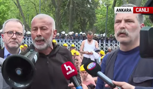 "Polisi, emniyeti halkın karşısına çıkarmak acizliktir. Meselemiz oldukça siyasi. Büyük bir direniştir. Tazminatlarını, maaşlarını istiyorlar, özlük haklarını istiyorlar. 8 gündür açız. Emniyet'in 24 saat gözetimi altında açız. Muhattaplarımıza, bakanlara, ülkeyi yönetenlere sesleniyoruz. 180 km yürüdük. Tek sıra yine bakanlığa yürüyeceğiz. Yıldızlar Holding'in 3 bin tane maden ruhsatı var. Bu arkadaşlara kim verdi? Keyif olsun, iş olsun diye yollarda değiliz. Müzakere etmek için buradayız. Zor durumdayız. Bu barikatı açın. Çok disiplinli hareket ederiz. Varlığınız bize çok büyük güç veriyor. Halkımız yanımızda."