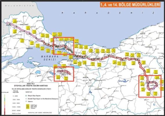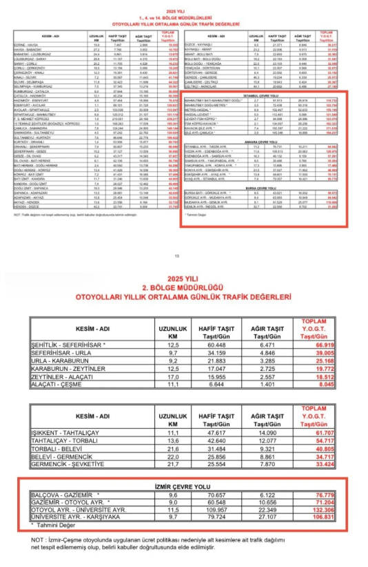 Bağlantı yollarıyla birlikte toplam uzunluğun 275 kilometreye ulaştığını belirten Yavuzyılmaz, bu hatlarda 2025 yılı boyunca 836 milyon 568 bin araç geçişi gerçekleştiğini ifade etti.