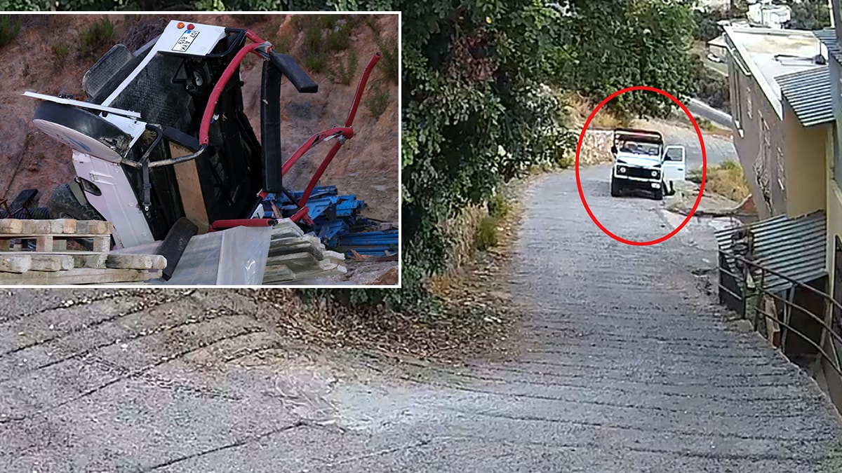 Olay, dün saat 18.30 sıralarında Sugözü Mahallesi Kütürüp mevkisinde meydana geldi. Sürücü Emre Alıcı, eşi Esma Alıcı ve kızı Fatma Ela Alıcı'nın bulunduğu 07 AYK 819 plakalı safari aracını rampada park edip, indi. İddiaya göre, el freni çekilmeyen araç, geri geri gitmeye başladı. Durumu fark eden Emre Alıcı, aracın açık kapısına asılıp, el frenini çekmeye çalıştı ancak başarılı olamadı. Safari aracı yaklaşık 10 metre yükseklikten inşaat malzemelerinin bulunduğu alana yuvarlanırken, Emre Alıcı son anda kendini yere atıp, kurtuldu.