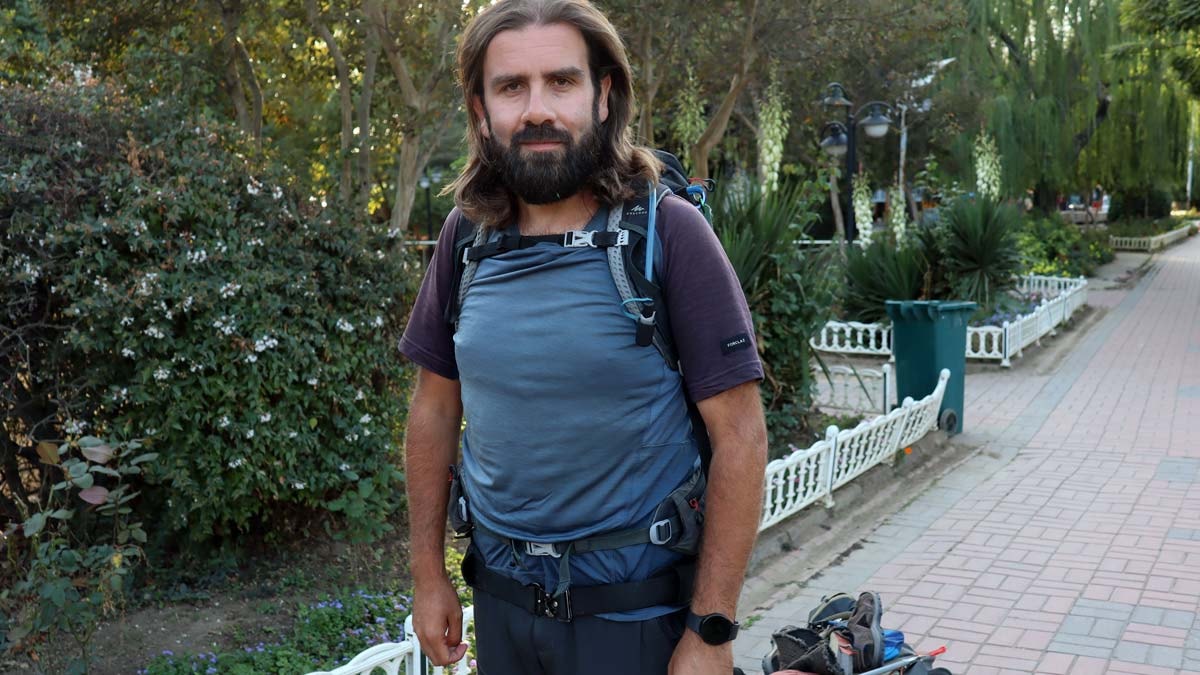 Parktaki çocuklarla sohbet edip, yürüyüş hakkında bilgi veren Murat Etemoğlu, 'Paris'ten İstanbul'a Çevre ve Barış Yürüyüşü' başlattığını ve yolculuk boyunca uyku ve molalar dışında yürüyüşüne kesintisiz bir şekilde devam ettiğini söyledi.