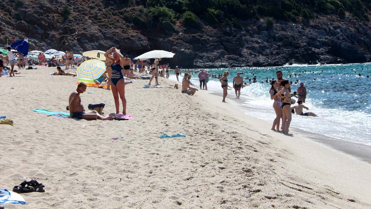 İlçenin ünlü Kleopatra ile Damlataş plajlarına gelen tatilcilerin bazıları şezlonglara ve kumsala uzanarak güneşlendi, bazıları ise denize girdi. Meteoroloji yetkilileri güneşli havanın hafta boyu devam edeceğini, salıdan itibaren yağışlı havanın hakim olacağını belirtti. (DHA)