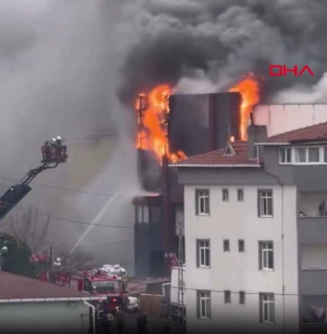 DHA- İstanbul’un Ataşehir ilçesinde bir iş yerinde çıkan yangına itfaiye ekiplerinin müdahalesi sürüyor.
