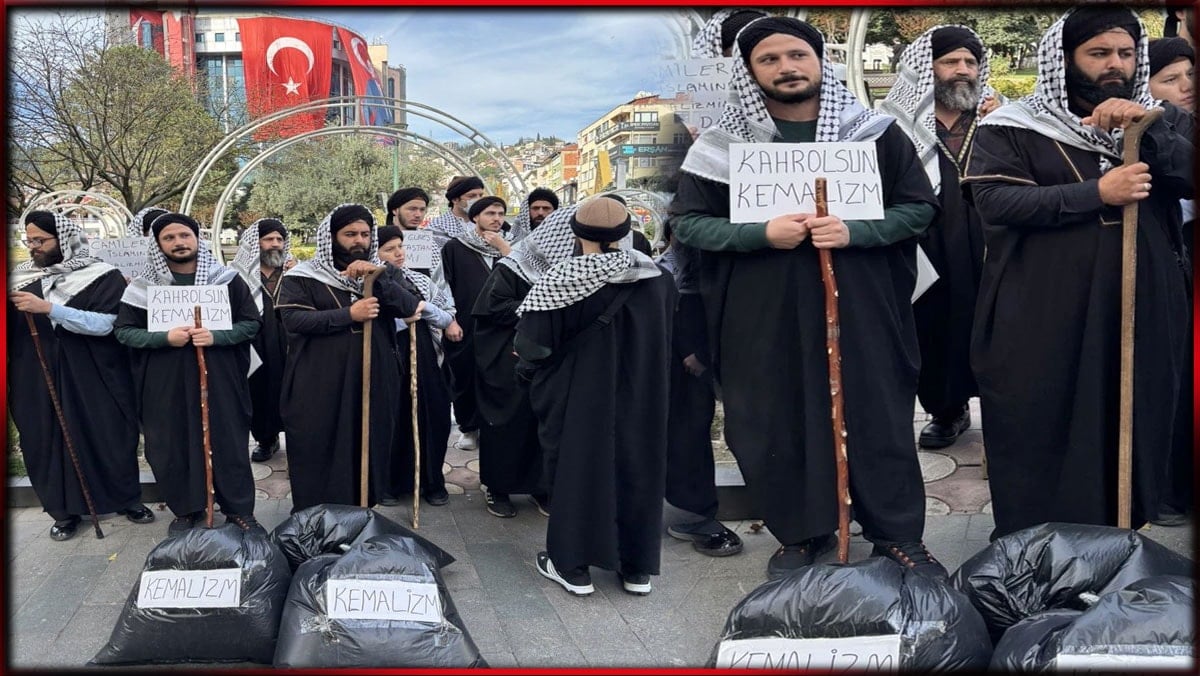 Kocaeli’de Atatürk karşıtı eylem yapan 10-15 kişilik Aczimendi tarikatı üyelerine halktan büyük tepki geldi. ‘Kemalizm’ yazılı siyah bir çöp poşetinin önünde, “Kahrolsun Kemalizm” pankartı taşıyan, tekbir getiren ve basın açıklaması yapan gruba vatandaşlar sloganlarla karşılık verdi.