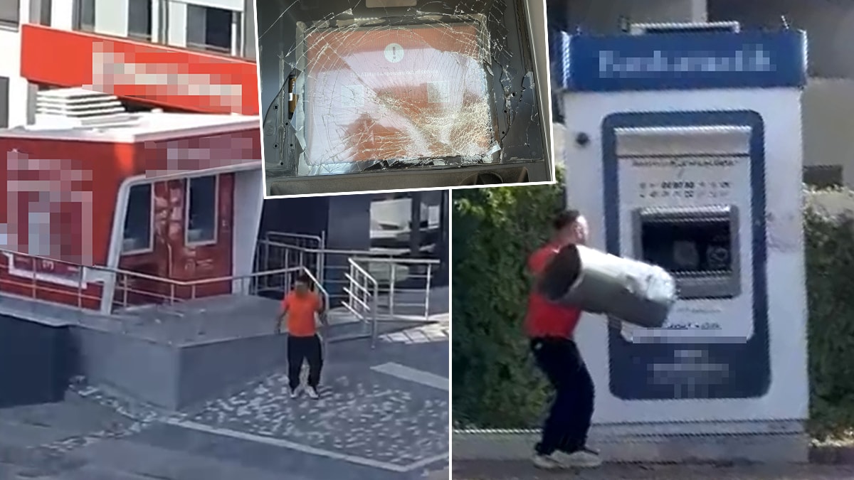 ATM'lere saldırı anları ise çevredekilerin cep telefonu kamerasına yansıdı. Görüntülerde şüphelinin ATM'lere taş ve çöp kovasıyla saldırdığı, ardından skuterine binip uzaklaştığı görüldü. Diğer yandan M.Ç.'nin zarar verdiği 4 ATM'nin ekranlarının kırıldığı ve ilgili bankalar tarafından tamir edildiği öğrenildi.