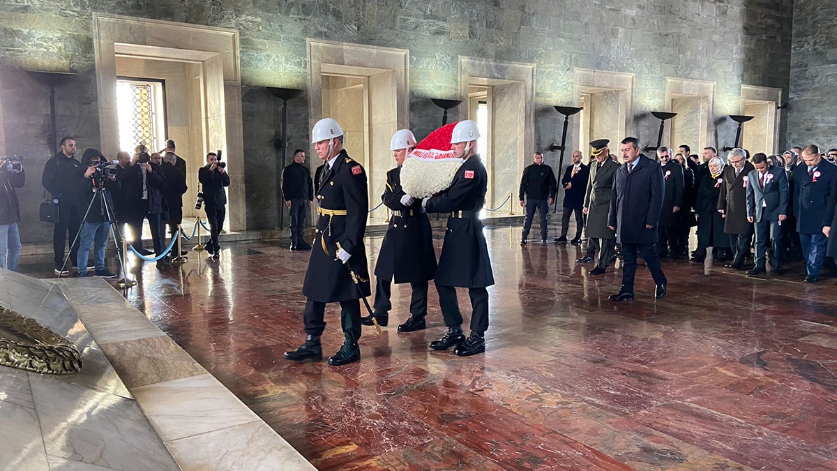 Milli Eğitim Bakanı Yusuf Tekin başkanlığındaki heyet, Aslanlı Yol'dan yürüyüp, Atatürk'ün mozolesine çıktı. Bakan Tekin'in mozoleye çelenk bırakmasının ardından saygı duruşunda bulunuldu. Heyet, daha sonra Misak-ı Milli Kulesi'ne geçti.