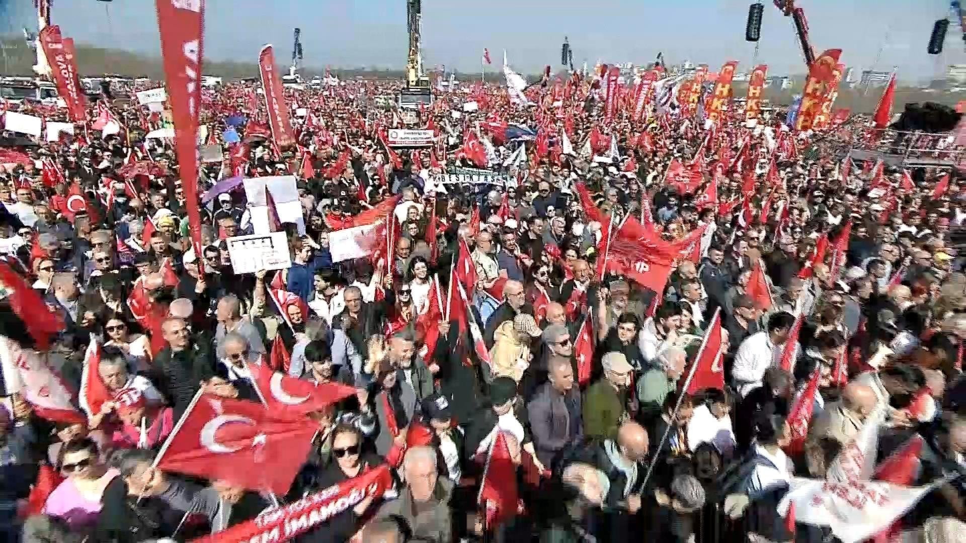 Yüz binlerce insan Maltepe'de CHP'nin düzenlediği İmamoğlu mitingine geldi, alanda adım atacak yer kalmazken bazı vatandaşların da Marmaray durağında yapılan kimlik kontrolleri nedeniyle alana henüz ulaşamadığı belirtildi.
