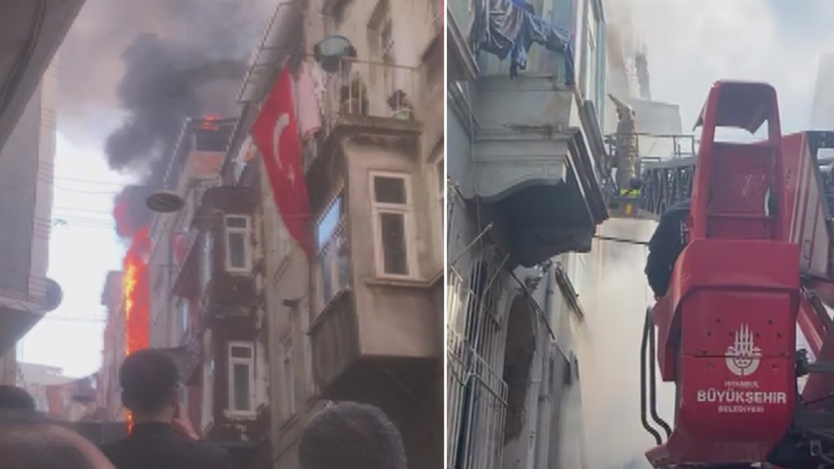 İtfaiye ekiplerinin müdahalesiyle yangın kontrol altına alınırken, içeride mahsur kalan 2'si çocuk 11 kişi merdiven aracıyla tahliye edildi.