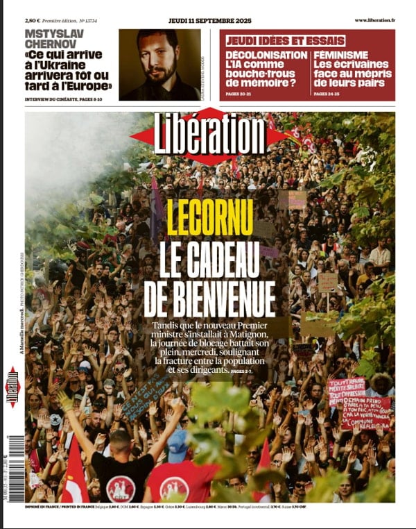 Fransız Liberation gazetesi dün ‘Lecornu’ya Hoş geldin Hediyesi’ manşetiyle çıktı, halk ile yöneticiler arasındaki uçuruma dikkat çekti. Sosyal konular ve vergi adaletini dayatmak için 18 Eylül’de sağlam bir grev yapmayı planlıyorlar.