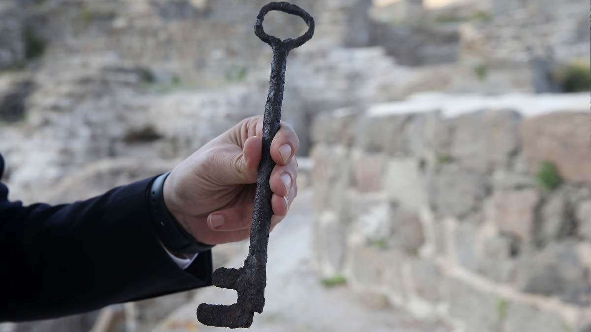 Kazının son günlerinde de kazı ekibince yürütülen çalışmada, nöbetçi kulübesinin bulunduğu yerde sarayın kapısına ait olduğu değerlendirilen anahtar ile kapının kilitlenmesini sağlayan demir aparatlar ortaya çıkarıldı.