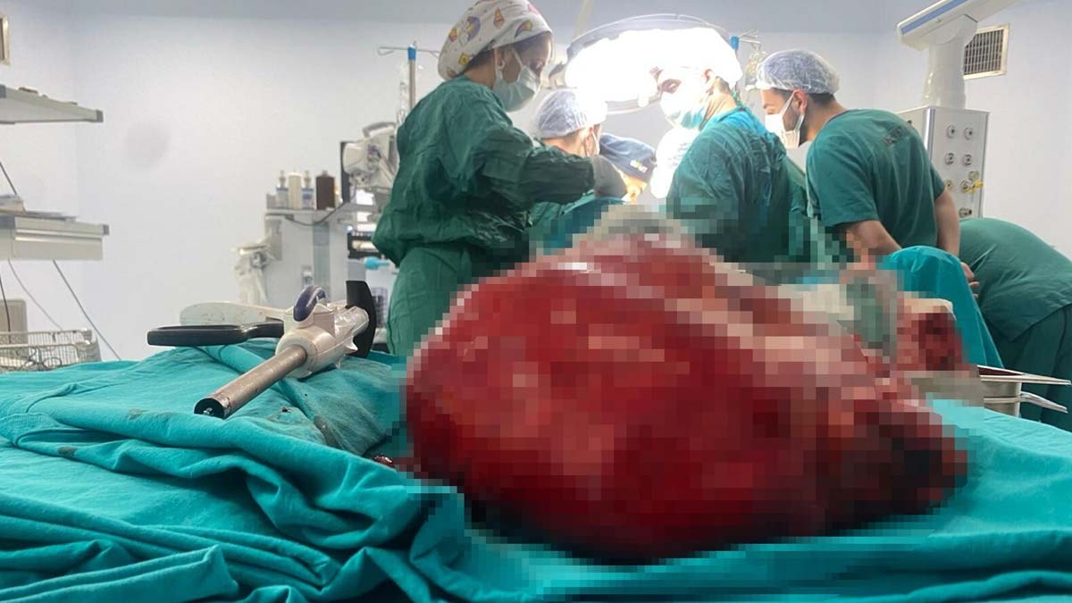 "Tümör ile bu organları çıkardık. Aynı zamanda tümörün içinden altından giden önemli damarı koruyarak geride hiç tümör dokusu bırakmadık. Tümörü çıkardık ve tartıp 8 kilo ağırlığında olduğunu gördük. Hastamızın bu ameliyatla yaşam süresini uzatma olasılığını sağladığımız için gururluyuz. Bu kitle karnın arka tarafında yer aldığı için büyük boyutlara gelene kadar kendini göstermemiş ve hastada herhangi bir şikayet olmamış. Hastanın genç olması bu şişkinliği önemsememesine neden olmuş. Daha sonra organlarına bası yapması sonucu şikayetlerin başlaması üzerine tetkik için doktora gidip hastalığı tesadüfen ortaya çıkmış."