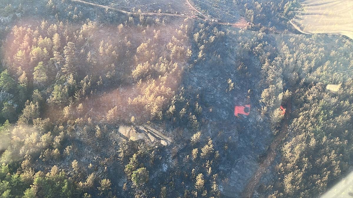Dün öğle saatlerinde başlayan yangın, yaklaşık 18 saat sonra kontrol altına alındı. Ekiplerin havadan ve karadan soğutma çalışmaları sürüyor. (DHA)