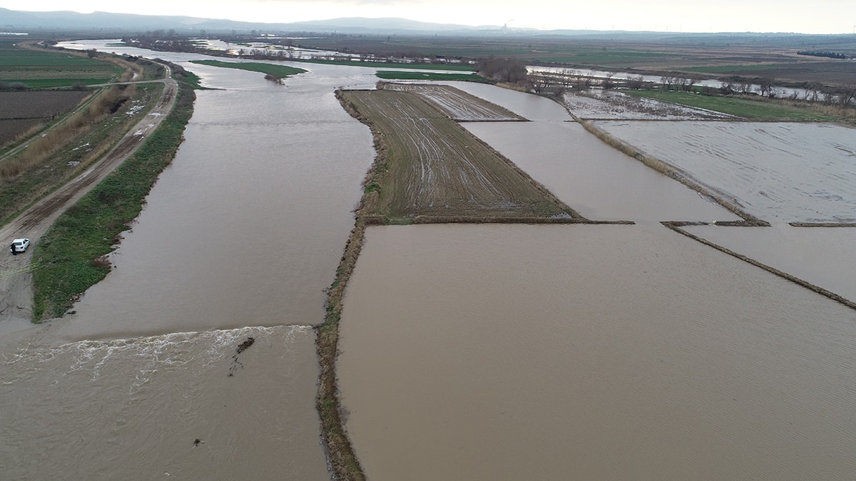 Troia Antik Kenti yakınındaki Kalafat, Tevfikiye ve Kumkale mevkilerinde dün kuvvetli yağış nedeniyle yaşanan taşkının ardından arpa ve buğday ekili arazilerde zarar oluştu.