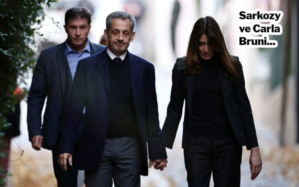 Eski Cumhurbaşkanı cezaevine eşi Carla Bruni ile ele ele geldi.