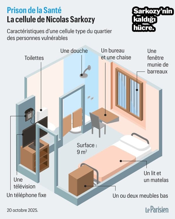 Fransa’nın eski cumhurbaşkanı Nicolas Sarkozy hapse girdi. Beş yıllık hapis cezasını Paris’teki bir hapishanede, tecrit koğuşunda bir hücrede çekecek.