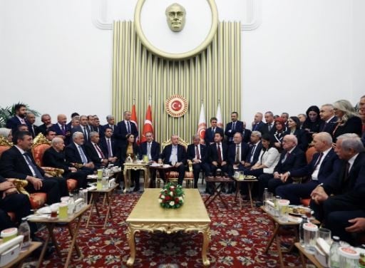 TBMM Başkanı Numan Kurtulmuş, TBMM 28. Dönem 4. Yasama Yılı açılışı dolayısıyla Meclis’te resepsiyon verdi. Cumhurbaşkanı ve AKP Genel Başkanı Recep Tayyip Erdoğan, resepsiyonda Gelecek Partisi Genel Başkanı Ahmet Davutoğlu ve DEVA Partisi Genel Başkanı Ali Babacan ile ilk kez yan yana oturdu.