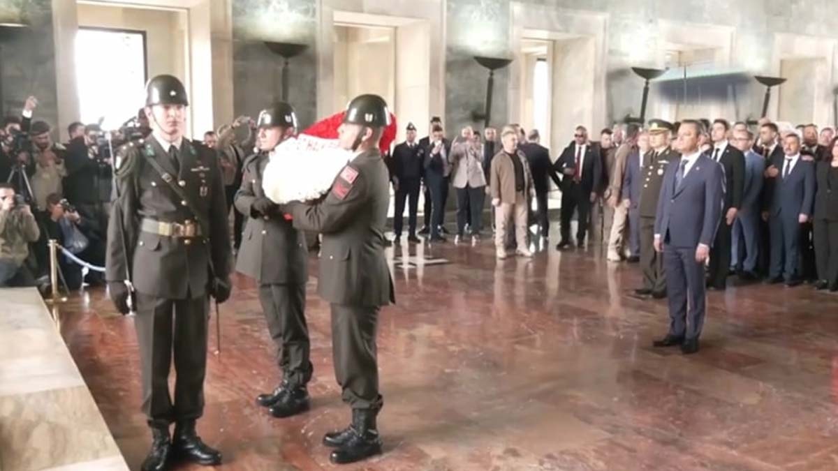 Özel başkanlığındaki heyet, Aslanlı Yol'dan yürüyerek Atatürk'ün mozolesine geldi. Özel'in mozoleye çelenk koymasının ardından saygı duruşunda bulunuldu.