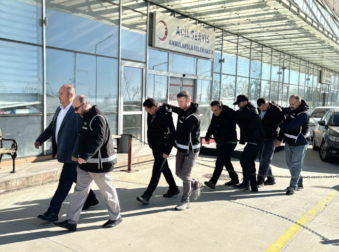 Gözaltına alınan şüpheliler, ifade işlemleri için İl Emniyet Müdürlüğü Kaçakçılık ve Organize Suçlarla Mücadele Şube Müdürlüğü'ne götürüldü.