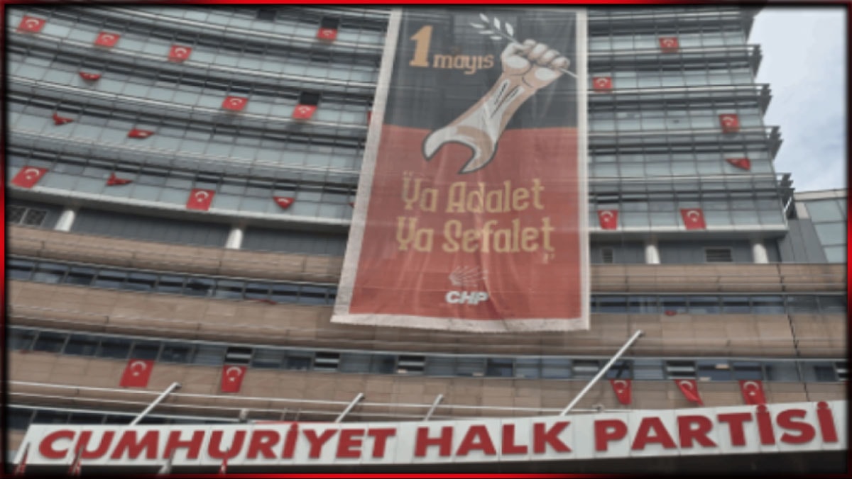 Yarın kutlanacak olan işçi bayramı için CHP'nin Genel Merkez binasına dev bir pankart asıldı. 'Adalet' çağrılı pankartta "Ya adalet ya sefalet" ifadesi dikkat çekti.
