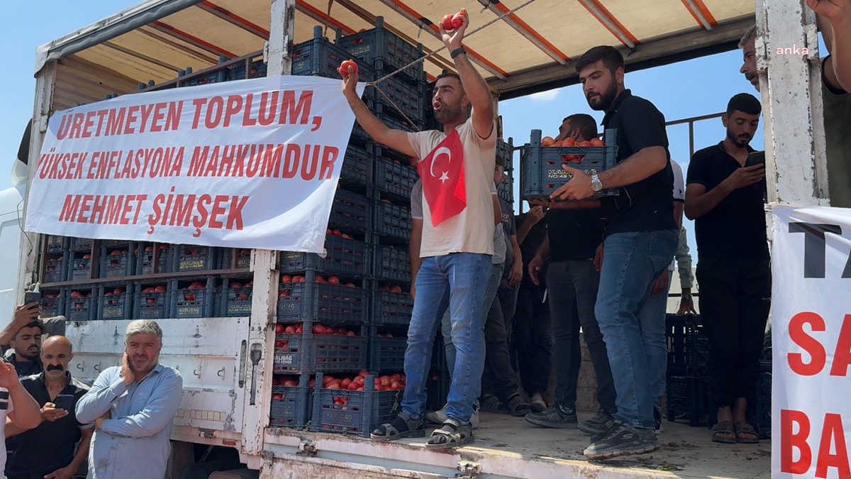Elinde kalan domatesleri kamyondan aracından yere döken bir çiftçi, "Bu domates köylünün, bu domates halkındır, yazık günah. Sayın Cumhurbaşkanım, Sayın Tarım Bakanı bizim toplama ile beraber 40 milyon maliyetimiz var. Bir dönümde 40 milyon maliyetimiz var. Benim iki tane kuyum var, 250 dönüm sürüyorum. 2 tane kuyumun faturası bir aylık 850 milyar para geldi. Ben yerin altından altın mı çıkarıyorum? Niye kimse sesimizi duymuyor. Niye kimse bu işe el atmıyor, bu domatesin bize maliyeti 10 TL. Fabrikalar bu domatesi 1.60 kuruştan alıyor" dedi.