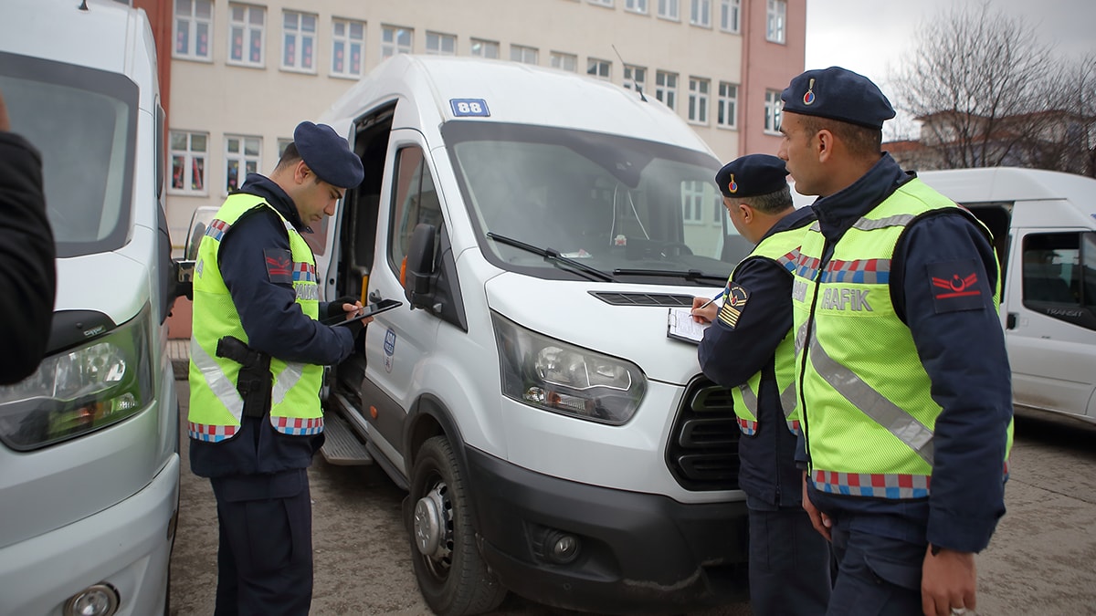 Polis ve jandarma ekipleri, bu kapsamda Fatih Sultan Mehmet İlkokulu'nda servis araçlarını denetledi.