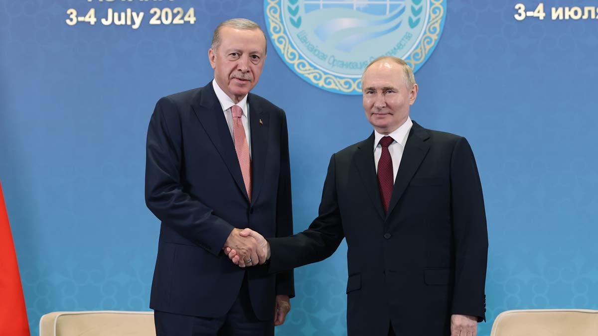 Erdoğan'ın, Şanghay İşbirliği Örgütü 24'üncü Devlet Başkanları Zirvesi için geldiği Kazakistan'ın başkenti Astana'daki temasları kapsamında, Rusya Devlet Başkanı Vladimir Putin ile görüşmesi başladı.