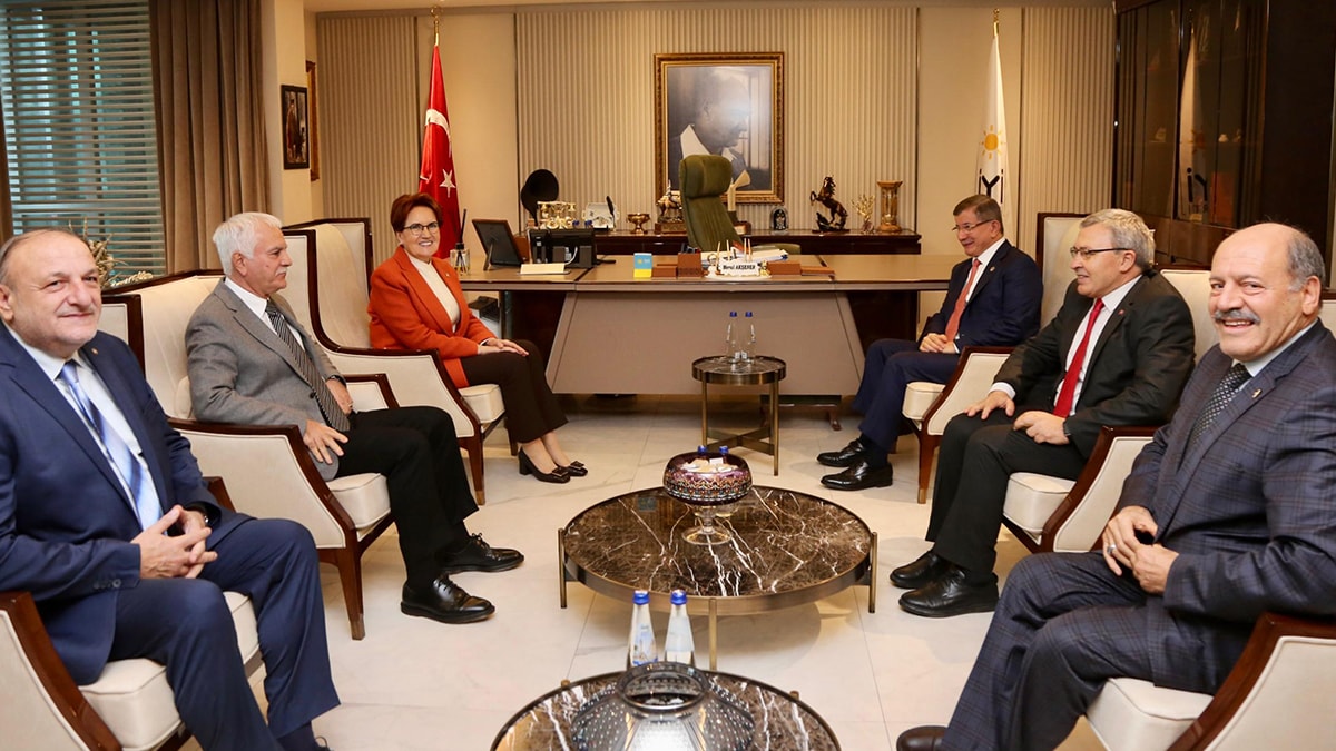 Davutoğlu, İYİ Parti Genel Başkanı Meral Akşener'i parti genel merkezinde ziyaret etti. Davutoğlu'na, Genel Başkan Yardımcıları Feramuz Üstün ile Aladdin Fırat, Akşener'e ise İYİ Parti Grup Başkanı Koray Aydın ile Siyasi İşler Başkanı Oktay Vural eşlik etti. İki liderin basına kapalı gerçekleştirdikleri toplantı, yaklaşık 1,5 saat sürdü.