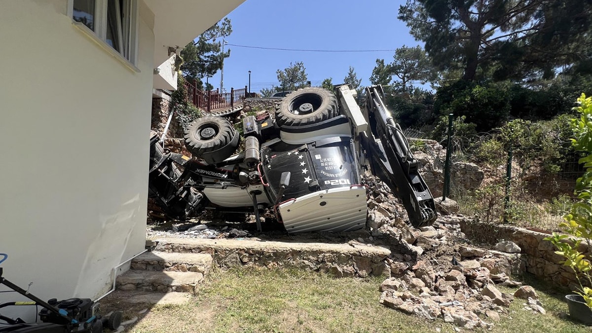 İlçeye bağlı kırsal Kocadağ Mahallesi'nde sürücüsünün kimliği öğrenilemeyen kepçe, inşaat alanındaki çalışma sırasında henüz bilinmeyen nedenle devrildi.