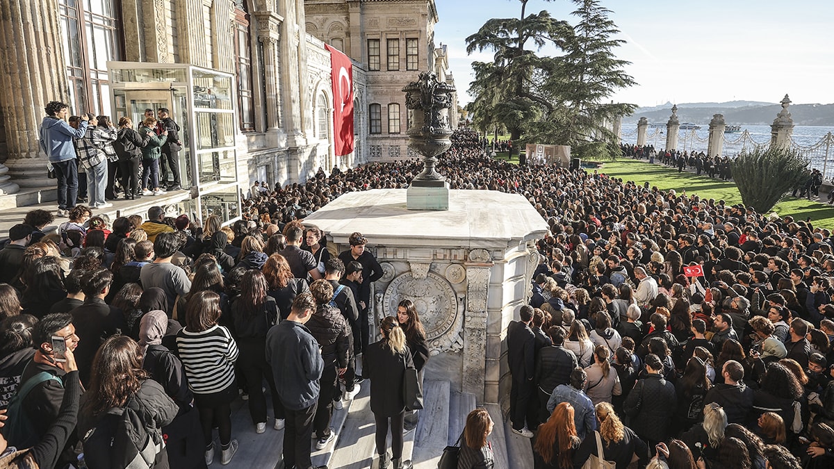 Ulu önder Mustafa Kemal Atatürkün vefatının 85'inci yılında 7'den 70'e Türkiyenin birçok yerinden vatandaşlar Dolmabahçe Sarayına akın etti. Sabahın erken saatlerinden itibaren saraya gelenler, Atatürkün hayata gözlerini yumduğu odasına karanfil bıraktı. Çocuklar, gençler, yaşlılar, binlerce kişi saatler 09.05'i gösterdiğinde çalan sirenle birlikte saygı duruşunda bulundu, İstiklal Marşı okudu. Gelenler arasında gözyaşlarını tutamayanlar da oldu.
