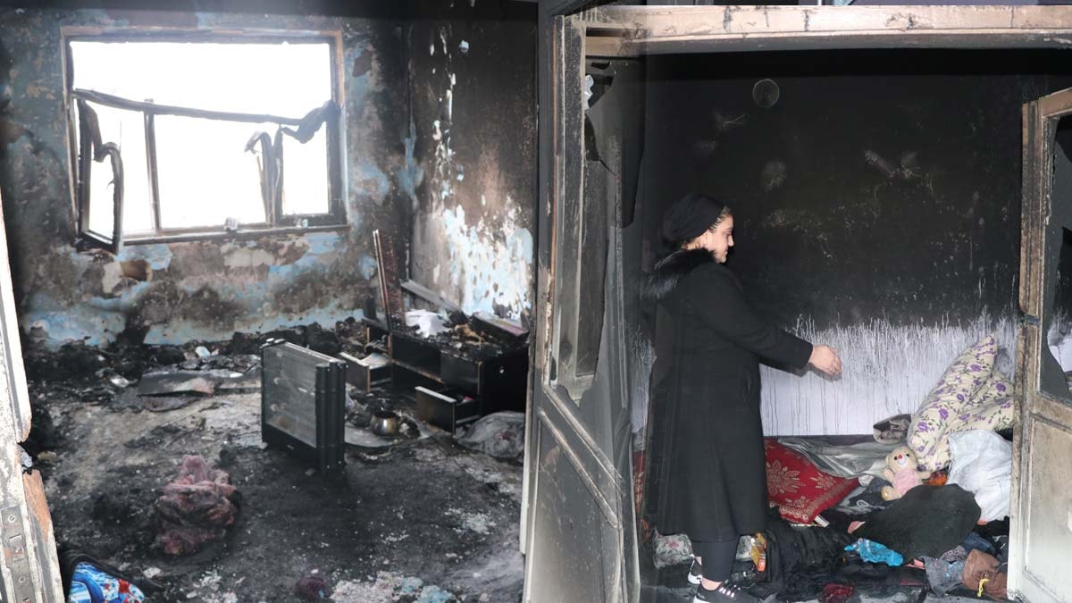 Ruken Karakaş, "Akşam 22.00'ye kadar uyanıktık. 4 çocuğum ile televizyon izliyorduk ve uykuya dalmışız. Saat 23.30 sıralarında dumanın etkisiyle uyandım. Alevler içerisinde kalmıştık. 3 çocuğumu evden çıkardım. 12 yaşındaki diğer çocuğumu da çıkarmaya geldiğimde, ateşin içerisinde emekleyerek onu aradım. Bulduktan sonra onu alıp, biraz ilerledikten sonra bayılmışız. Daha sonra komşularımız gelip, kolumuza girip dışarı çıkarmış. Dışarı çıktığımızda yüzüme su dökerek beni ayılttılar. Daha sonra polis, ambulans ve itfaiye geldi. Ambulansla hastaneye gittik. Taburcu olduktan sonra gidecek hiçbir yerimiz yoktu ve sokakta kaldık. Eşim şehir dışında çalıştığı için ne yapacağımızı bilmiyorduk. Telefonum yandığı için ilk başta onunla irtibata giremedim. Kız kardeşim benimle iletişime geçti. Evimizi onarıncaya kadar kendisinde kalabileceğimizi söyledi. Ev sahibi ile konuştum. Evi kiraya verildiği şekliyle geri istiyor. Bizim de o kadar gücümüz yok. Eşim şehir dışında inşatta hamallık yapıyor. Yetkililerden yardım bekliyorum" dedi.
