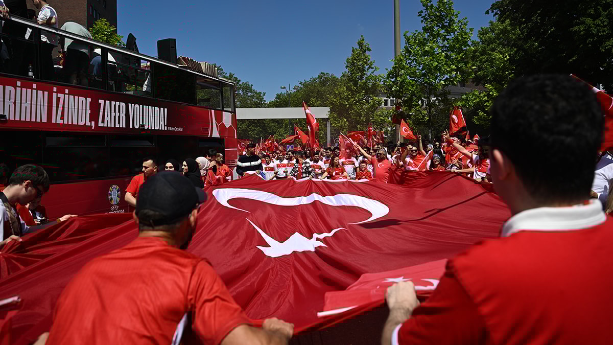 Almanya’da Türk taraftarlar 3’lü çektirdi, milli marşımız söylendi. Dortmund stad çevresinde “Ölürüm Türkiyem” türküsü yankılandı.