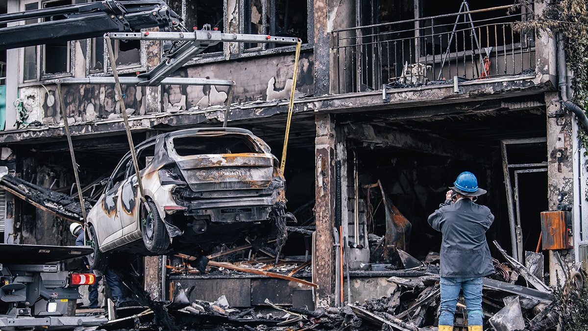 İtfaiye sözcüsü tarafından yapılan açıklamada, Licht Caddesi'nde yerel saatle 02.25'te bir binanın alt katındaki büfede çıkan yangına hemen müdahale edildiği, meydana gelen patlamayla alevlerin üst katlara sıçradığı ve binayı sardığı belirtildi.