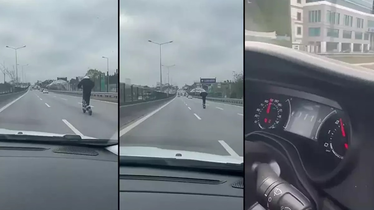 Olay, yanından geçen araç sürücüsü tarafından kayda alındı. Kayıt yapan sürücü, kendisi 110 kilometre hızla giderken, skuterin 120 kilometre hızla gittiğini göstererek şaşkınlığını gizleyemedi.