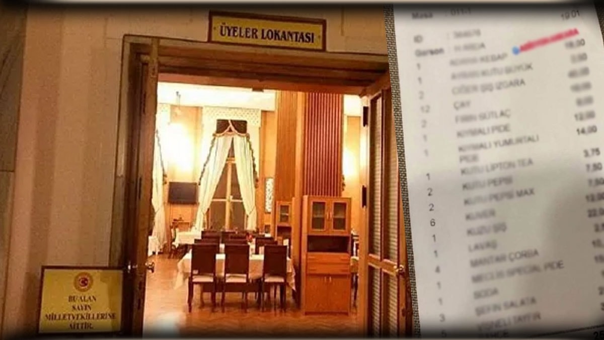 En Son Haber'in aktardığına göre, geçtiğimiz günlerde Meclis lokantasına ait bir adisyon fotoğrafı sosyal medyada paylaşıldı. 8 kişilik bir grup, öğle yemeğinde 4 Mevsim Salatası, 2 Brokoli Çorbası, 4 Fıstık Şöleni, 2 Püreli Hasan Paşa Köftesi, 1 Izgara Köfte, 2 Kahveli Mus, 2 Kuzu İncik Keşkekli, 2 Kuzu Şiş ve 1 Zeytinyağlı Antalya Piyazı yemiş.