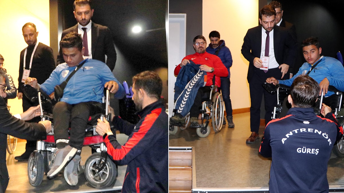 Ödüllerini alan Seven ve Gürgen, sahneden inerken de zorluk yaşadı. Arka bölümdeki kulis merdivenine tekerlekli sandalyeleriyle gelen sporcular, yine arkadaşlarının yardımıyla inebildi.