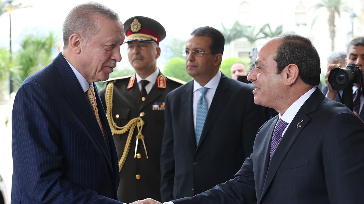 Erdoğan ile eşi Emine Erdoğan'a; Dışişleri Bakanı Hakan Fidan, Hazine ve Maliye Bakanı Mehmet Şimşek, Milli Savunma Bakanı Yaşar Güler, Sağlık Bakanı Fahrettin Koca, Sanayi ve Teknoloji Bakanı Mehmet Fatih Kacır, Ticaret Bakanı Ömer Bolat, Cumhurbaşkanlığı İletişim Başkanı Fahrettin Altun ve Cumhurbaşkanı Başdanışmanı Akif Çağatay Kılıç eşlik etti.