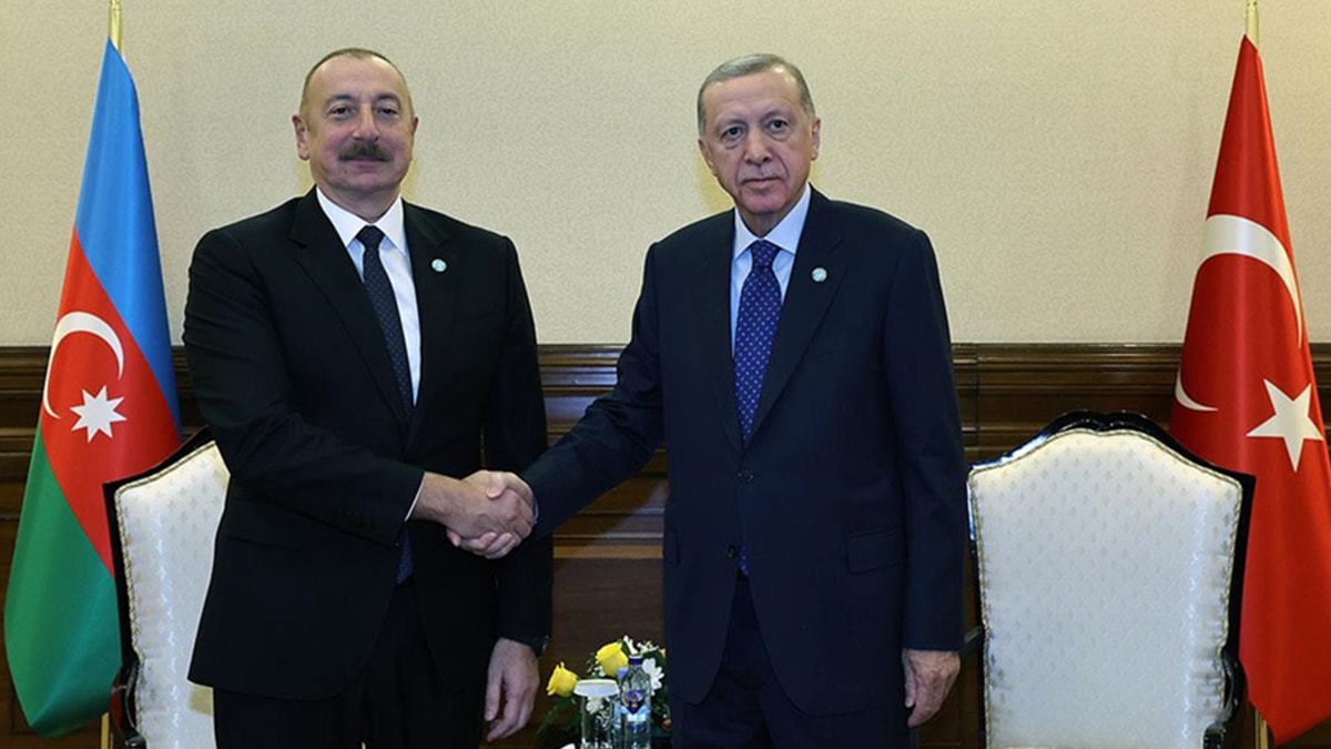Aliyev'e Allah'tan rahmet dileyen Turan, "Türkiye Cumhuriyeti'mizin 100. yılı vesilesiyle toplandık. Rabb'im, Gazi Mustafa Kemal Atatürk'ün ruhunu şad etsin ve tüm şehitlerimizin ruhları şad olsun. Bugünlere kolay gelmedik, hala dünya ateş içerisinde. Bizim bizden başka dostumuz olmadığını da hepimiz çok iyi biliyoruz. 100 yıl önce 7 düvel bu aziz milletin üzerine çöreklendi. Bağrımızdan bir yiğit ve onunla çokça yiğitler çıktı. Allah'a çok şükür modern Türkiye Cumhuriyeti'ni kurduk." diye konuştu.