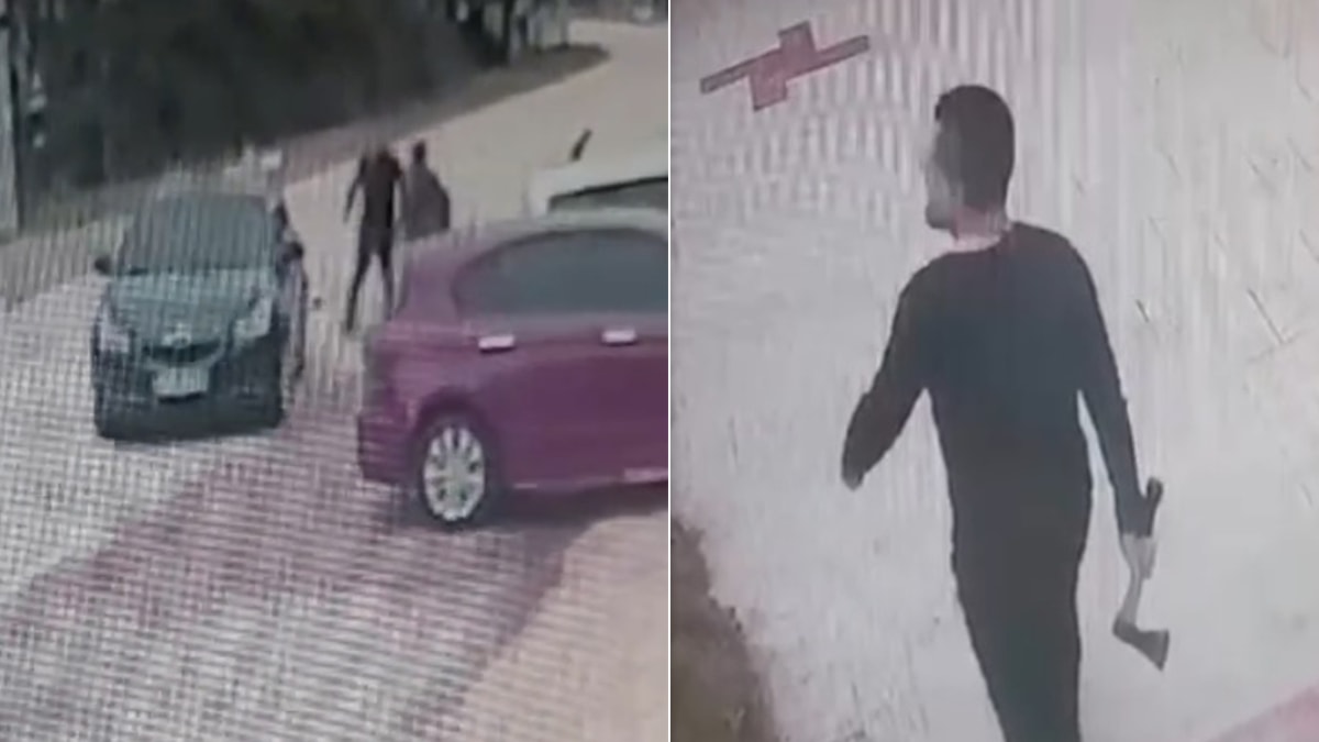 Olayın gerçekleştiği binanın güvenlik kamerasına yansıyan görüntülerde İ.A.nın baltayı alıp kiracısı ve yanında bulunan kişilere doğru gittiği, balta ile vurduğu anlar yer aldı.