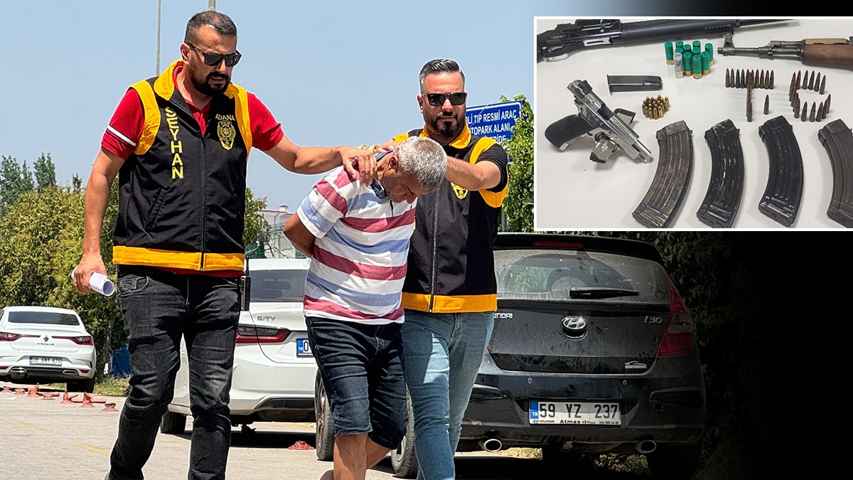 Polis ekipleri, ikametin damında yaptıkları aramada battaniyeye sarılı kalaşnikof piyade tüfeği, av tüfeği ve tabanca ile bu silahlara ait çok sayıda merme ve kartuş buldu.