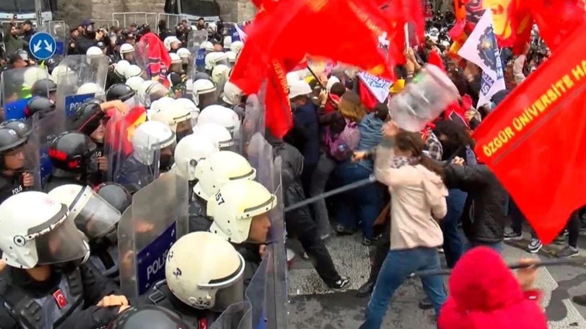 Polis ekipleriyle grup üyeleri arasında yaşanan arbede sırasında bir kişinin polise damacana ile vurduğu görüldü. Polisin yaptığı müdahalenin ardından grup Aksaray Meydanı’na doğru dağıtıldı.