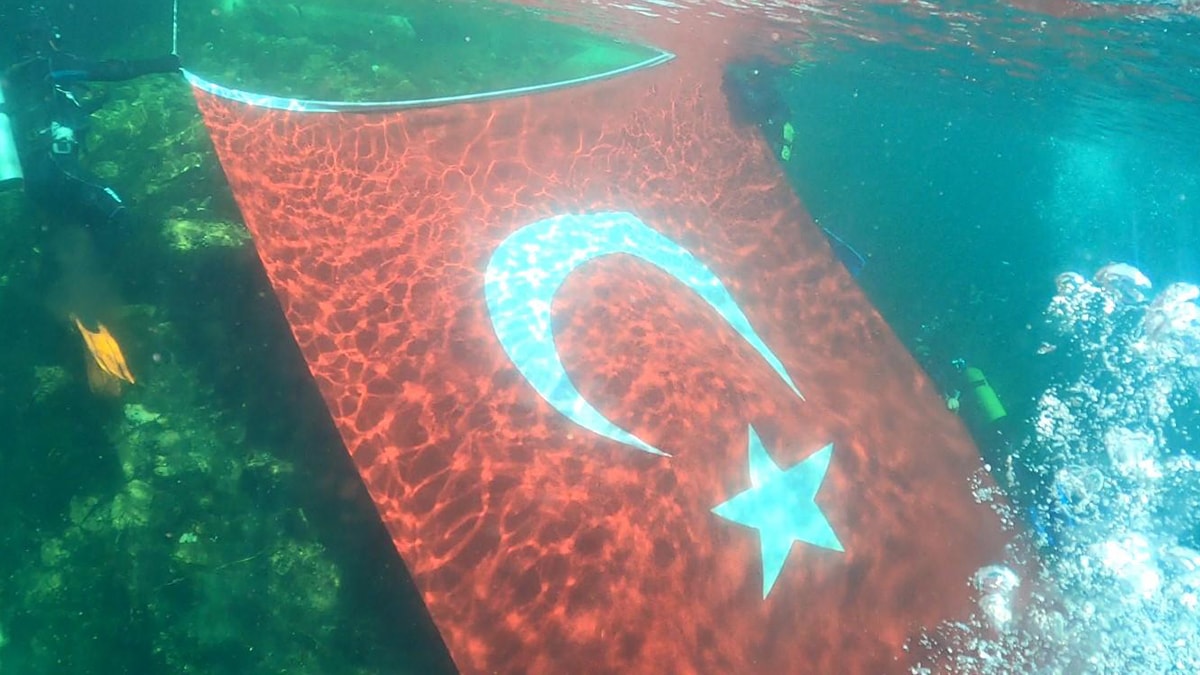 İlçede 30 Ağustos Zafer Bayramı'nın 102. yıl dönümü için düzenlenen etkinlikler kapsamında dalgıçlar, Fırat Nehri'nde açtıkları Türk bayrağını Birecik Köprüsü'ne astı.